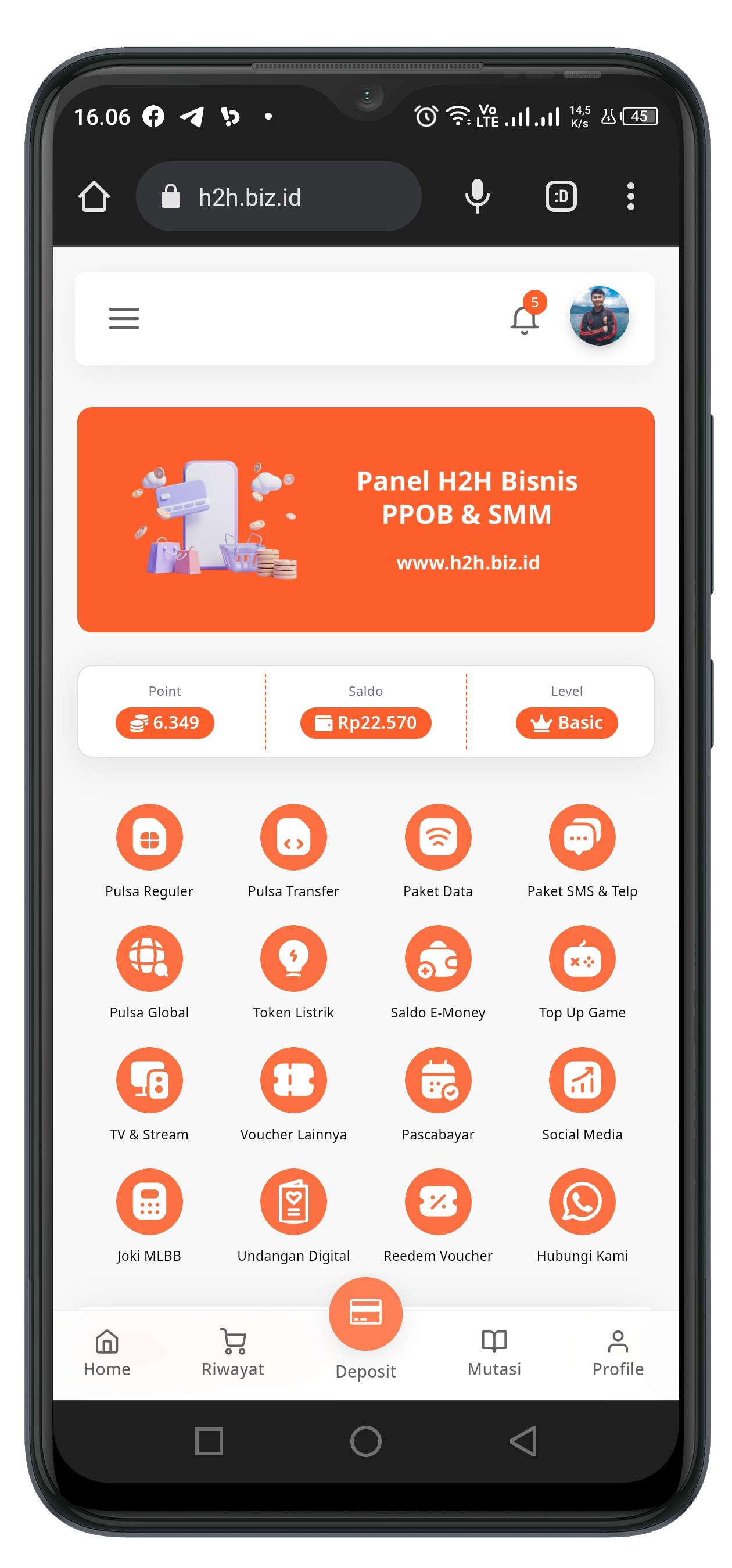 H2H BIZ adalah pusat reseller dan h2h layanan pulsa, ppob, dan topup game termurah. Dengan bergabung bersama kami, Anda dapat menjual produk isi ulang seperti pulsa, paket data, voucher game, e-money, serta menjual layanan topup game murah. Selain itu H2H BIZ juga menyediakan produk Social Media Marketing seperti Followers, Like, View, dsb.